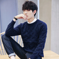 双股加厚圆领羊毛衫男士商务休闲扭花针织衫百搭毛衣青少年羊毛衫