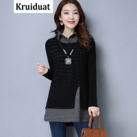 时尚新款妈妈装针织衫女洋气加绒款女毛衣中年假两件套头衫毛线衣