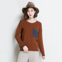 韩版拼色堆堆领套头衫修身显瘦打底毛衣棉线秋季新款女针织衫