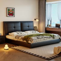 意式极简真皮床主卧现代简约双人床轻奢小户型实木储物床软包婚床
