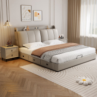 北欧真皮床轻奢现代简约双人床钢琴键奶油风储物床主卧室软包婚床