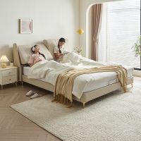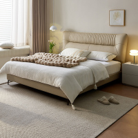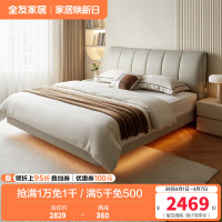 全友家居奶油风轻奢真皮床分体式可调节软靠卧室皮床双人床皮艺床软床家具