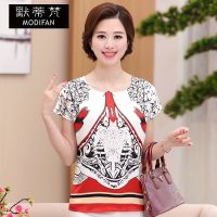 默蒂梵夏季女装短袖中老年加肥加大码桑蚕丝T恤中年妈妈装宽松上衣