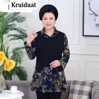 Kruidvat2017春季中老年加肥加大码女装长袖T恤衫胖妈妈装Z026黑色
