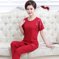夏季女睡衣纯棉短袖长裤中年妈妈胖mm中老年加肥加大码家居服套装