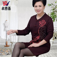 卓勝基中老年加肥加大码胖妈妈装T恤中年圆领套头中长款打底衫40-50岁深红色