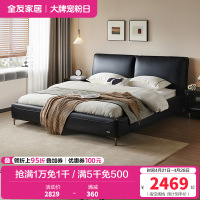 全友家居 意式头层牛皮真皮床极简风主卧室双人高脚大床