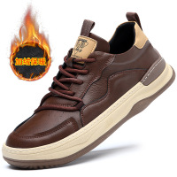 春季新款男鞋子牛皮透气欧洲站潮流百搭棕色复古真皮休闲板鞋