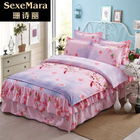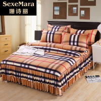 珊诗丽新款)韩版【床裙式】床罩款【送礼袋】公主风四件套爱家朗加厚保暖磨毛床单被子套被罩1