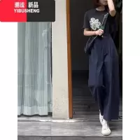 YIBUSHENG日系藏青色高腰阔腿休闲西装裤女季小个子薄款宽松九分直筒裤子