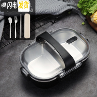 三维工匠304不锈钢餐盘分格餐盘家用餐盒食堂学生儿童餐盘饭盒保温便当盒 黑色[级不串味版]送餐具+提带