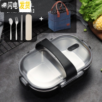 三维工匠304不锈钢餐盘分格餐盘家用餐盒食堂学生儿童餐盘饭盒保温便当盒 黑色[级不串味版]+袋+餐具+提带
