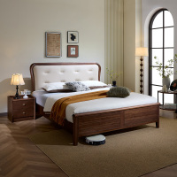 全实木床真皮黑胡桃木北美原木1.8米卧室现代1.5极简婚床意式软包