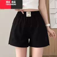YIBUSHENG松紧腰百搭字母刺绣休闲裤女季小个子宽松直筒阔腿短裤显瘦裤子