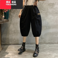 YIBUSHENG季水洗棉休闲裤女士高腰大口袋哈伦裤松紧腰七分八分裤