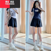 YIBUSHENG牛仔短裤女水洗棉a字短裤2024季薄款宽松松紧腰显瘦休闲短裤子