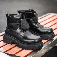 经典黑色百搭皮靴子男士大头厚底增高鞋马蹄跟时尚德比鞋马丁男鞋