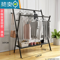 敬平晾衣架落地卧室折叠挂衣服架子双杆室内凉衣杆家用简易阳台晒衣架 豪华侧衣帽架置物款黑色120长 大