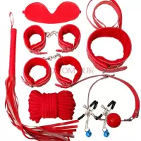 久爱(Jiuai)手铐脚铐口塞皮鞭 器具套装SM八件套 成人情趣用品玩具 sm八件套红色