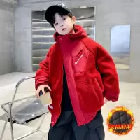 男童夹棉外套秋冬款新款儿童装红色毛毛衣年服冬季加厚羊羔绒