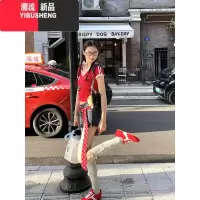YIBUSHENG美式甜辣妹红色V领短袖球衣T恤女季设计感小众修身收腰短款上衣