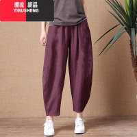 YIBUSHENG中老年妈妈棉麻九分裤季亚麻女裤宽松大码松紧腰休闲裤哈伦裤女