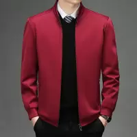 恒源祥春秋款男士夹克外套中老年爸爸装宽松立领上衣服本命年红色