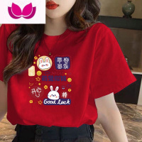 七斓2023兔年本命年短袖t恤女上衣新年夏季薄款大红色半袖打底衫