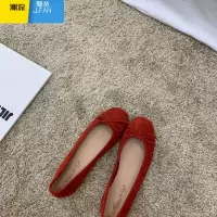 聚范蝴蝶结浅口平底小红色单鞋女鞋子2023年新款婚鞋芭蕾舞鞋