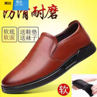 聚范皮鞋男商务正装休闲软底透气黑色软皮中老年爸爸鞋