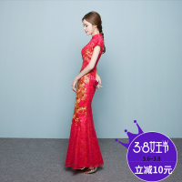 敬酒服新娘春季2018新款红色旗袍长款长袖鱼尾中式结婚礼服女修身