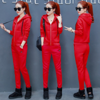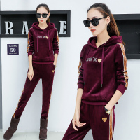 运动套装女2017冬季新款女装韩版金丝绒卫衣加绒加厚休闲两件套潮