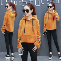 2017秋冬新款女装长袖加绒加厚卫衣女宽松韩版连帽套头刺绣外套潮