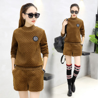 休闲运动套装女2017秋冬季新款时尚宽松加厚加绒卫衣短裤两件套潮