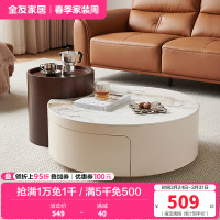全友家居高矮圆茶几组合客厅钢化玻璃易清洁茶台茶桌边几