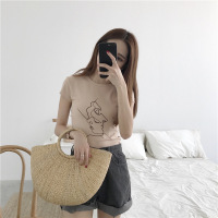 YIBUSHENG辣妹卡通猫咪印花黄色短袖t恤女季短款紧身显瘦多巴胺穿搭上衣