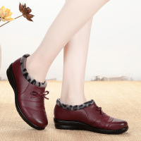 冬季真皮妈妈鞋棉鞋加绒加厚保暖中老年冬鞋防滑平底短靴