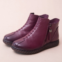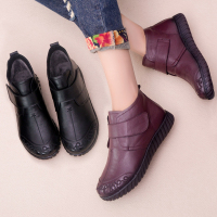 手工平跟短靴女中老年人冬鞋软底妈妈棉皮鞋民族风短筒靴新款