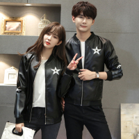 步来褶惠皮衣PU皮夹克情侣装星星外套修身男立领机车夹克夏