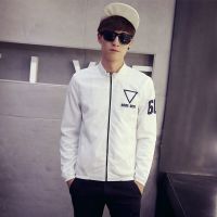 步来褶惠2017秋季新款时尚纯色夹克男修身袖口贴标立领外套夏