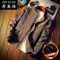 丹杰仕2016秋冬季男士加厚加绒灯芯绒夹克青少年时尚立领修身运动外套港风字母简约大码外衣