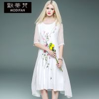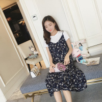 薇侣2017新品夏季韩版t恤两件套装裙雪纺中长裙碎花吊带鱼尾连衣裙