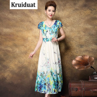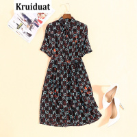 Kruidvat2017夏季新款系带短袖印花中长裙女