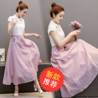韩国大码T恤女装夏季新款开叉长裙打底衫上衣过膝胖妹妹连衣裙女_1