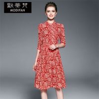 锦铭七玥2018春秋新款女装韩版西装领长袖一步裙中长款时尚色气质连衣裙
