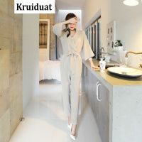 Kruidvat2017韩版霸气西装领时尚蝴蝶结收腰腰显瘦连体裤裸杏色