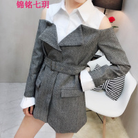 锦铭七玥韩版2018春新款女装香气质衬衫拼接西装连衣裙开衫外套