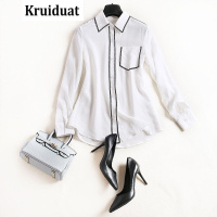 Kruidvat2017春季新款女装撞色织带开衫长袖衬衫B075白色