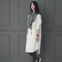 薇侣2017新品白色衬衫女长袖韩范中长款外套大码百搭气质潮宽松
