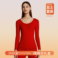 A类大红色本命年保暖内衣女纯棉7A结婚内衣红色秋衣秋裤套装_39
